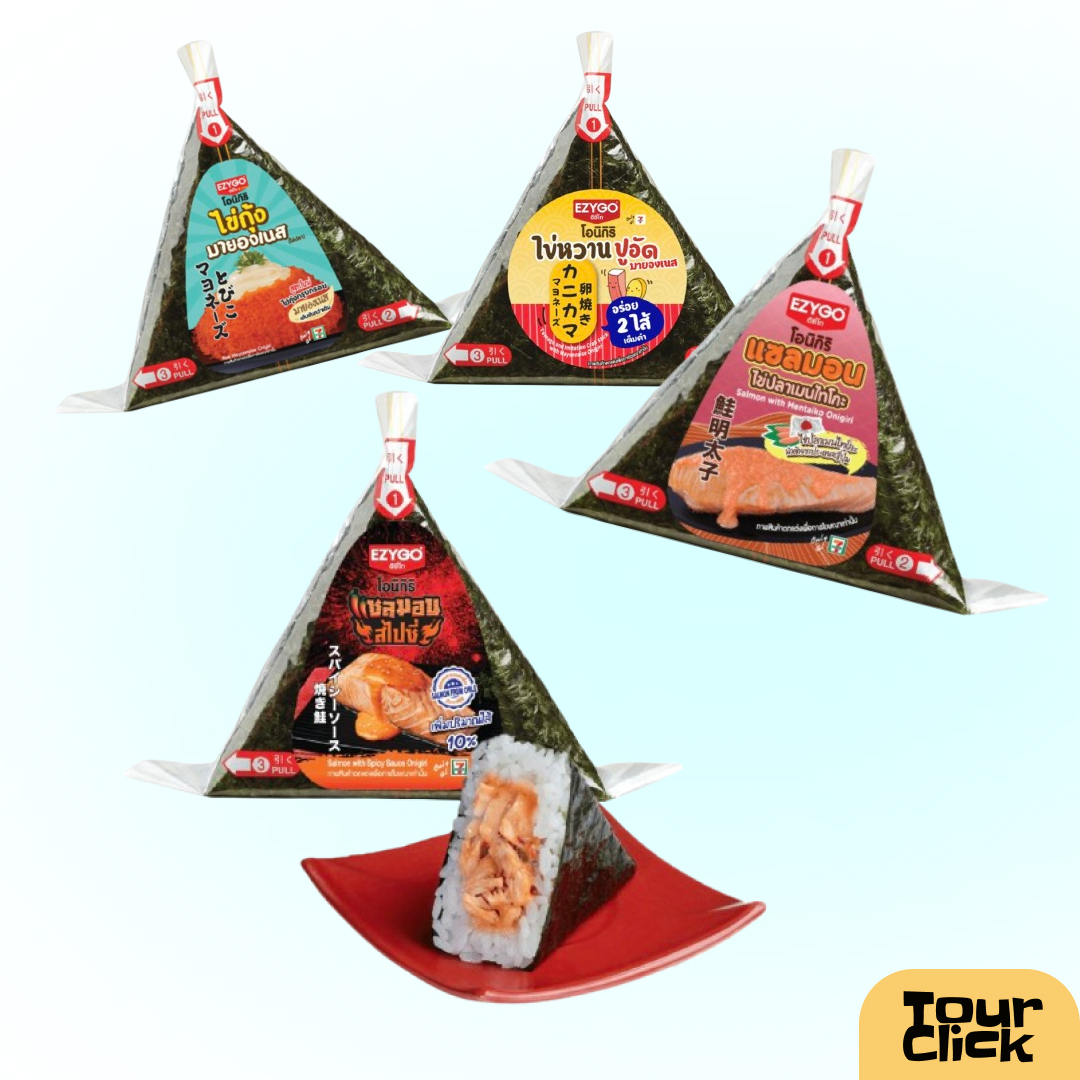 Рисовые треугольники с разнообразными начинками. Есть как острые варианты, так и более мягкие. Цена тоже приятная — около 30 бат.