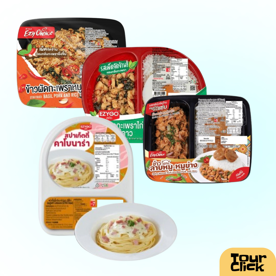 Готовые блюда на любой вкус. Внимание: на упаковке с нарисованным перцем — острое! Если хочется чего-то безопасного и вкусного, возьмите карбонару — дети от неё в восторге! Цена в среднем 40–50 бат.